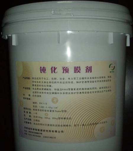 | 5.钝化预膜剂 产品用途:本品适用于化工、化肥、冶金、电力等工业循环水系统和大型商场、宾馆、学校及机关事业单位的中央空调系统、锅炉管道等设备化学清洗除垢后金属表面的钝化预膜处理。产品2005年获得河南省科技进步二等奖。 |